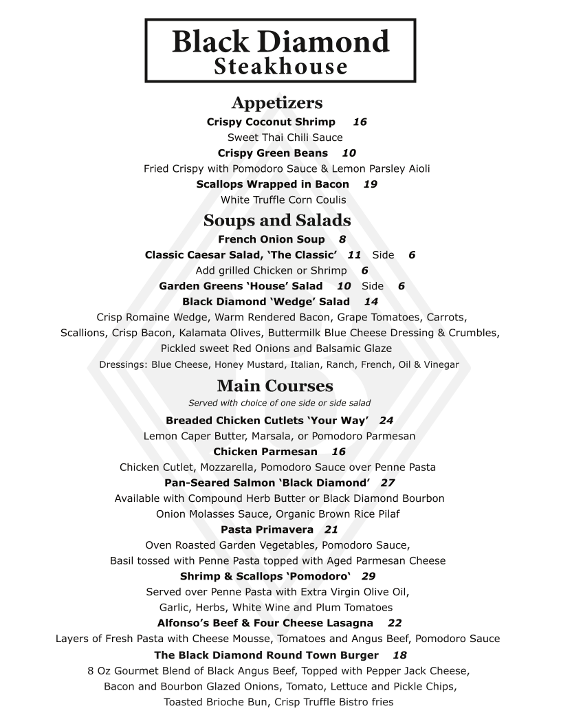 For those adventurous enough to venture beyond traditional fare, items like the prime rib sliders and ratatouille are worth mentioning. One guest noted their disbelief at enjoying vegetables for the first time, marking the chef’s skill in transforming simple ingredients into a delightful dish. And if you're looking for something to complement your meal, their Pay Dirt beer is highly recommended, adding a perfect final touch to your dining experience at Black Diamond.